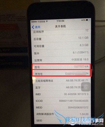 4、最后进入关于本机之后,将滚动条往下拉就可以看到iPhone 6的型号与序列号了,我们通过这两项信息就可以了解iPhone6是否是行货。