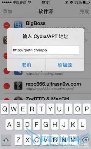 1. 首先你的设备必须是已越狱的 (查看越狱教程),先开启 Cydia,点击下方【管理】—【软件源】—右上角【编辑】—左上角【添加】—添加新源地址http://rpetri.ch/repo—【添加源】