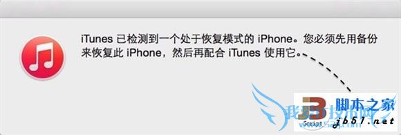 -- 当看到屏幕黑屏时,请松开电源键,继续按住主屏Home键,直到电脑端的iTunes出现检测到一个处于恢复模式的iPhone;