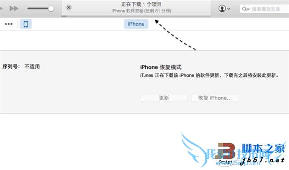 注 :很多小伙伴在这一步会注意到iTunes窗口中的“序列号不适用”的提示,由于是在恢复模式下,这里显示不可用是正常的,无需担心。