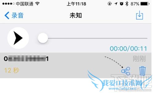 8、如果想要把电话录音分享或是导出的话,请点击【分享】图标,如图所示