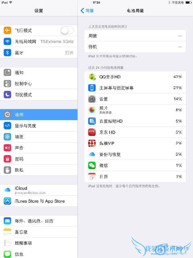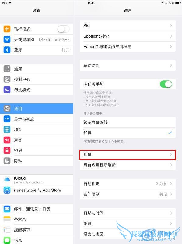 1、在iOS 8中可以查看电池使用情况,找出哪些程序消耗了你的电量,首先打开【设置】,在【通用】中找到用量。