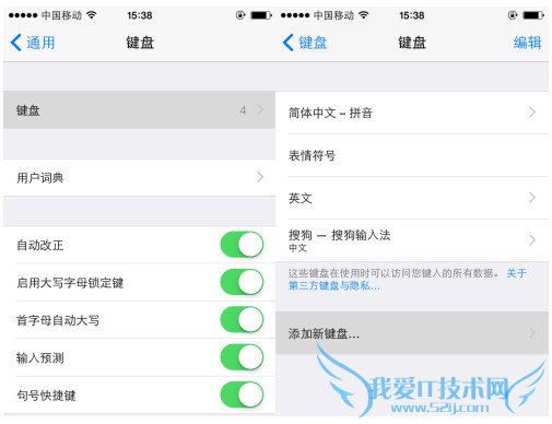 如果成功添加了输入法,这个时候你就能够看到了,就像图片中的搜狗输入法一样。如果想要添加新的输入法,只需点击下方的【添加新键盘】即可。
