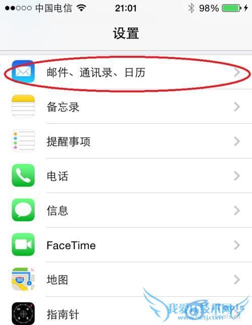 1、在【设置】里找到【邮件、通讯录、日历】