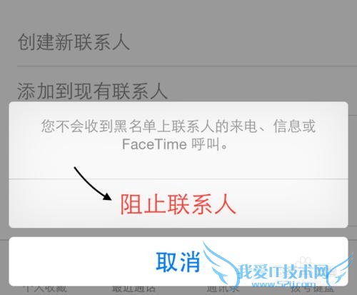 4、随后再点击“阻止联系人”选项,即可把这个号码添加到黑名单中。