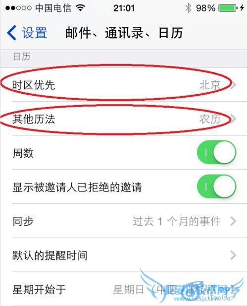 2、在这个界面中找到【日历】,【时区优先】设置为“北京”,其他历法中将“农历”选中,这样就能看到农历了。
