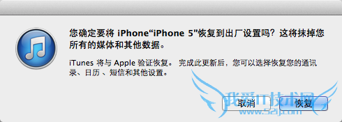 将iphone5连接电脑,用iTunes 恢复出厂设置,