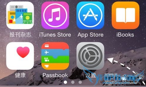 在我们激活苹果6手机时,有选择显示模式的选项,如果你想在后期更改放大模式的话,请先打开主屏上的“设置”应用,如图所示