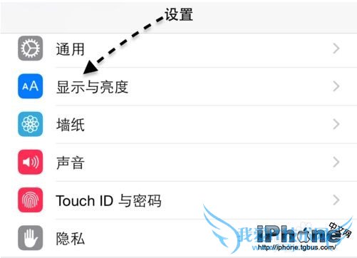 在设置列表中找到“显示与亮度”选项,如图所示