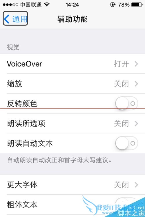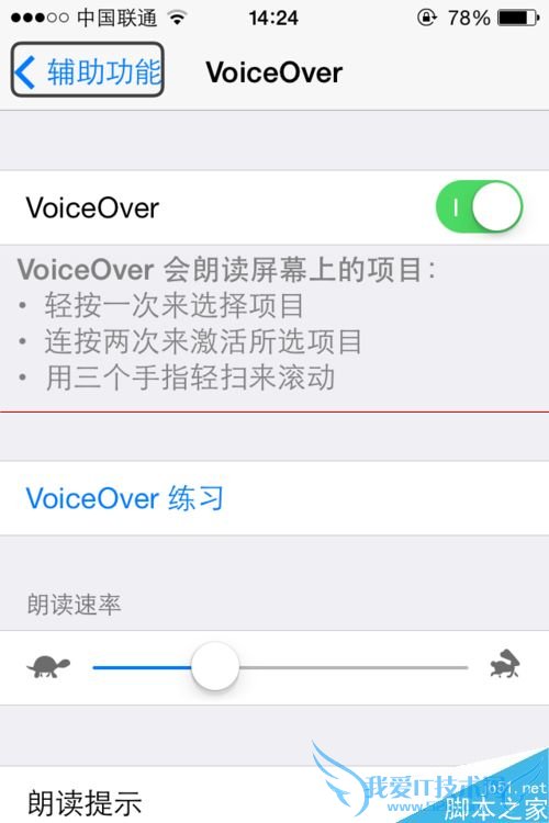 4、这就是控制这个VoiceOver的功能开关键我们再次用上述打开方法来打开这个选项使之关闭,这样就可以了是不是很简单那。