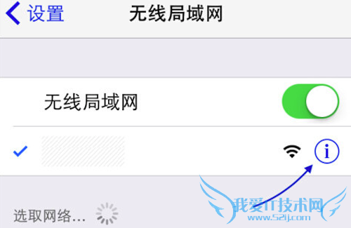第三步:接着在无线局域网网列表中,点击IPHONE当前已经接入的无线网右侧的感叹号图标。