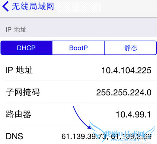 第四步:随后可以看到当前无线网的参数,点击DNS选项.