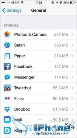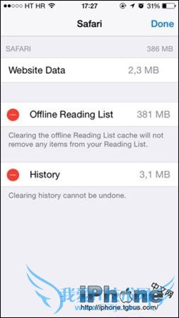 Safari在iOS 5加入 “Reading List” 功能,让你储存网页和所有设备同步,供稍后离线阅览。现在的网页越来越多高清图片和其他东西,所以储存在 Reading List 随时可以快速耗用数 GB空间。至于Safari占用大量储存空间清除方法就是进入 iOS 「设置」→「通用」→「用量」,要等一会应用程式清单才会出现。找到 Safari ,点击进入,按右上角「编辑」就可以移除「离线阅读列表」。