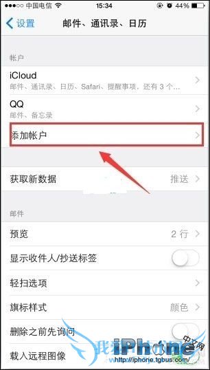 1、打开设置——下拉找到邮件、通讯录、日历选项,如图所示: