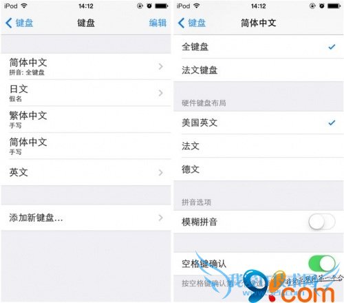 2.再选择键盘→找到简体中文→拉到最下面开启“空格键确认”