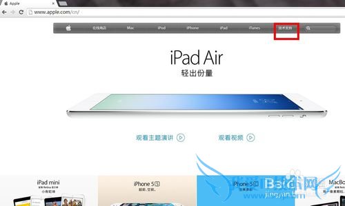 登录苹果官网:http://www.apple.com.cn点击右上角"技术支持"。