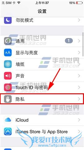 1)点击6Plus手机的【设置】,再选择【隐私】。(如下图)