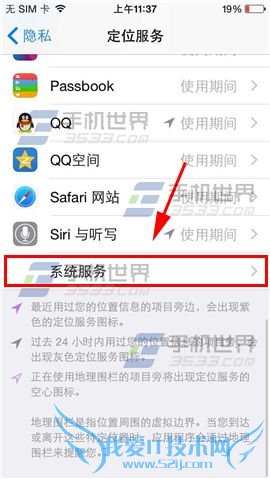 2)在隐私界面点击【定位服务】,再点击【系统服务】。(如下图)