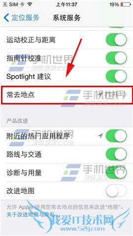 3)在系统服务界面找到并点击【常去地点】,进入后关闭【常去地点】右边按钮即可。(如下图)