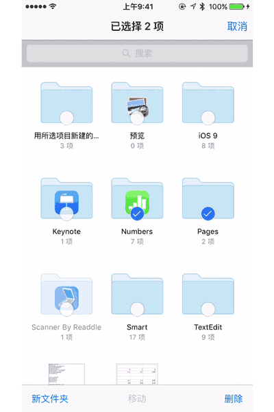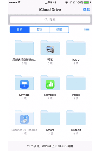 虽然在 iOS 中,苹果尽量淡化文件管理的概念,不过为了配合 OS X 系统,苹果还是在 iOS 9 中加入了 iCloud Drive 应用。我们可以在 iCloud Drive 中查看储存在苹果 iCloud 服务中的文件。在早期的测试版中,iCloud Drive 应用是默认隐藏的,开启非常简单,进入设置——iCloud 中,选择开启 iCloud Drive 即可。