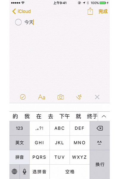 首先,我们可以在备忘录中制作简单的待办事项清单,让备忘录变成待办事项管理的好帮手,轻松创建购物清单、旅游计划等内容。我们在新创建的备忘录中,只需点击右下角的圆形+号图标,再点击左侧的圆形对勾图标,这时备忘录就会创建待办事项。输入完一项后,点击换行,会自动生成第二个待办事项。