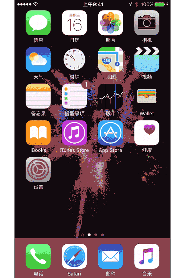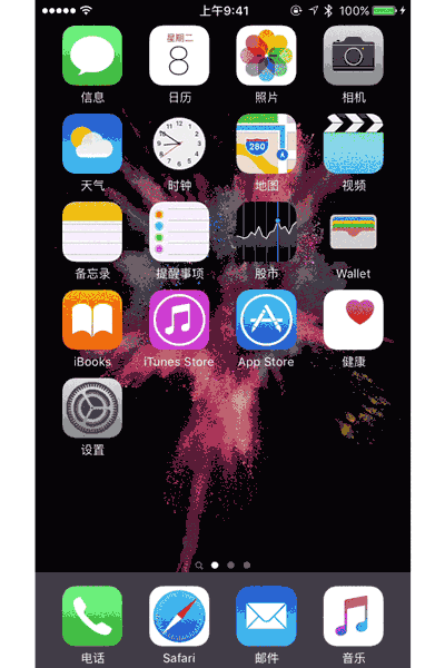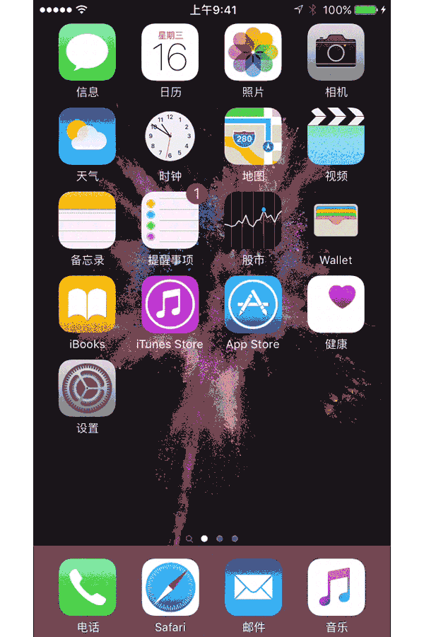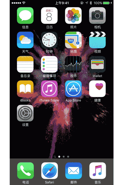 iOS 9 还带来了全新系列的墙纸,这些墙纸的纹理非常细腻,在 Retina 高清显示屏下效果很棒,新壁纸包括羽翼壁纸以及彩色爆炸颗粒等。有新墙纸加入,一些就的墙纸自然就会消失。
