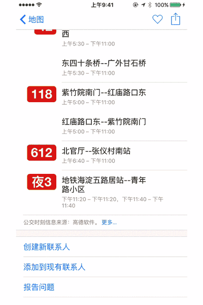 虽然苹果地图上线之后就一直很坎坷,还直接导致了前 iOS 主管 Scott Forstall 离职,但苹果最近几年对地图应用一直很上心。在 iOS 9 中加入了两大比较实用的功能,第一个功能就是开始支持公共交通,用户可以查询公交车、地铁等公交信息。第二个功能就是查询附近的咨询,可以快速检索周围的餐饮、购物以及娱乐等信息。