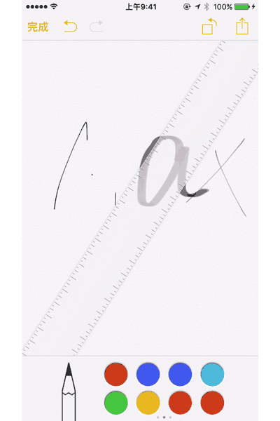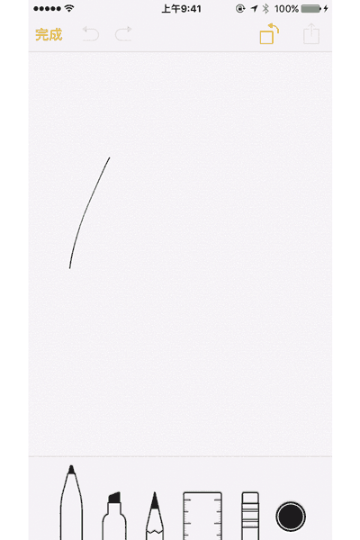 在 iOS 9 备忘录中可以在备忘录中直接画草图,应用多种草图绘制工具。在创建备忘录时,点击右下角的+号按钮,并选择草图图标即可进入草图绘制界面。草图绘制界面的工具很多,比如不同粗细的笔、尺子、橡皮,我们还可以选择不同的颜色,让草图变得更多彩。