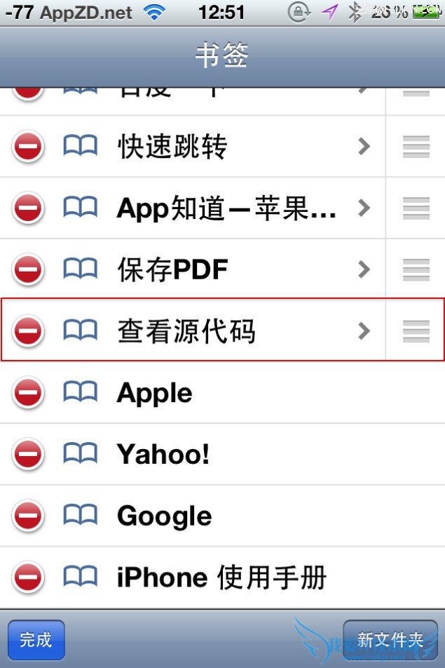 这时候就可以使用了,比如回到www.appzd.net,点击书签按钮并选择查看源代码书签,就会打开一个新的窗口,在该窗口中就是所需要的源代码了
