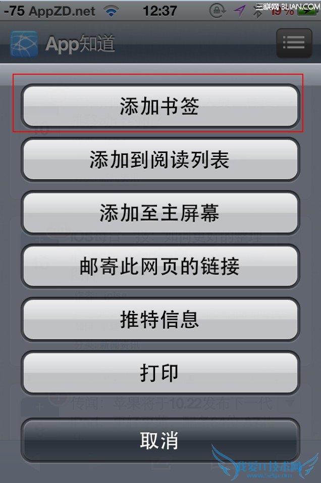 打开任意一个网站,比如www.appzd.net,点击下面的分享按钮