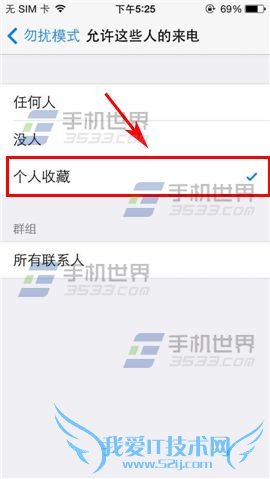 3)然后再点击【允许这些人的来电】进入,可根据自己的需求来设置,比如点击【个人收藏】联系人组。(如下图)