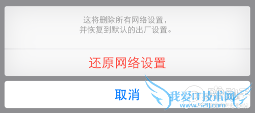 4、随后再请点击底部弹出的“还原网络设置”按钮,确认还原即可。等待系统还原成功以后,看看是否可以正常拨打电话。