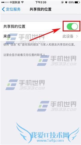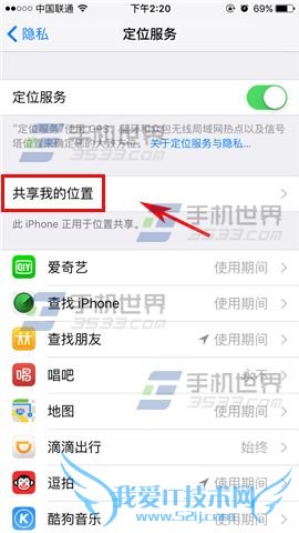 2)接着我们再找到【共享我的位置】,最后将其旁边的椭圆往左拉关闭即可。(如下图)