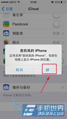 2)在“iCloud”中输入账号密码,然后在“查找我的 iPhone”中,点击开启就可以设置完防盗功能了。