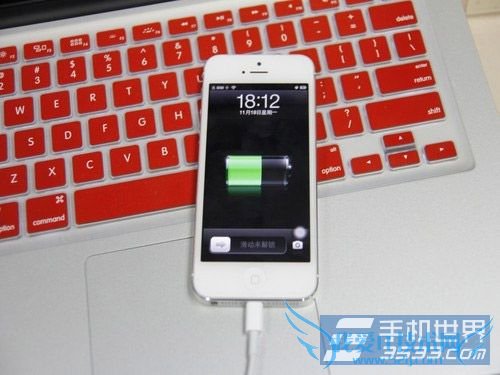 2、连接数据线,让苹果产品与电脑通过数据线连接。
