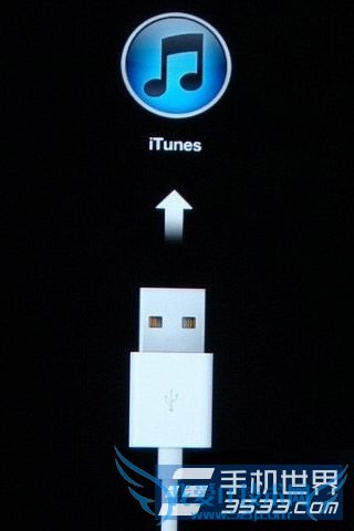 4)在同时按住HOME键跟电源键至关机状态下后,送开电源键(平时开关机的按键),【注:HOME键还是持续按住!】等待10秒左右,等待itunes连接信号。