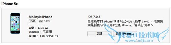 5)连接上itunes后会如上图显示图片,表示你的iPhone已成功连接电脑!