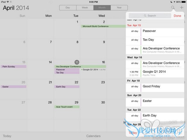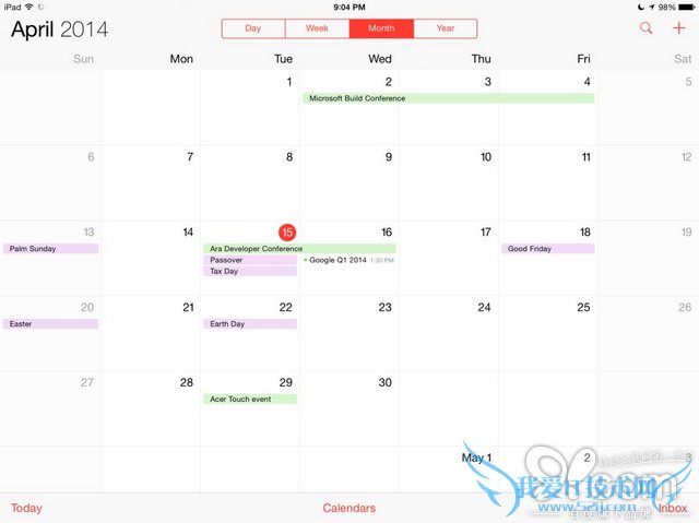 如何在iPad的日历应用程序里切换显示为列表视图?(需要iOS 7.1以上)