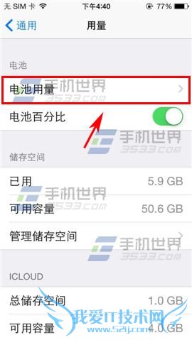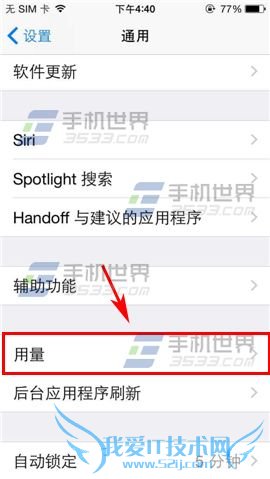 1)打开iPhone6的【设置】,选择【通用】,然后点击【用量】。(如下图)