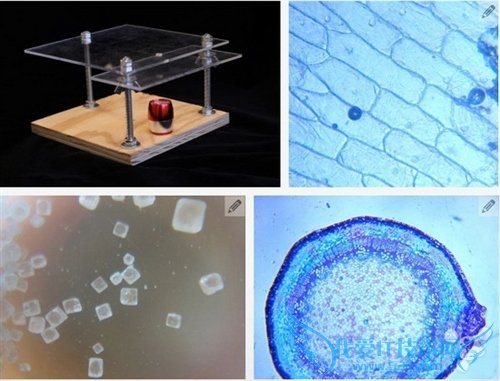 根据 Yoshinok 的说法,要开始 DIY 首先准备如下材料: - 3 颗方颈螺栓 - 9 颗螺母 - 3 颗碟形螺母 - 5 个垫圈 - 1 个胶合板 -- 作为基座 - 2 个树脂玻璃 -- 分别放置相机和样本 - 1 个激光笔上的聚焦透镜 - LED 灯(非必要,用以制造背光) 整套系统中最核心的部分在于激光笔上的聚焦透镜,但它并不需要多么高级的部件,市面上随处可见的产品就可以了。据了解,这个 DIY 的“高功率显微镜”能够放大 175 倍,足以看清植物细胞了。当然了,10 美元的成本中不包括 iPhone 本身。