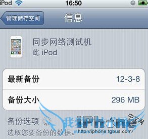 4【管理存储空间】会显示备份和邮件所占用的空间;选择要管理设备的备份,iCloud会显示本机信息和最新备份的时间和大小等信息。