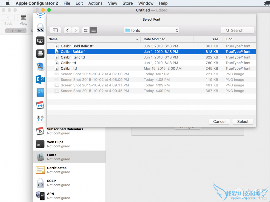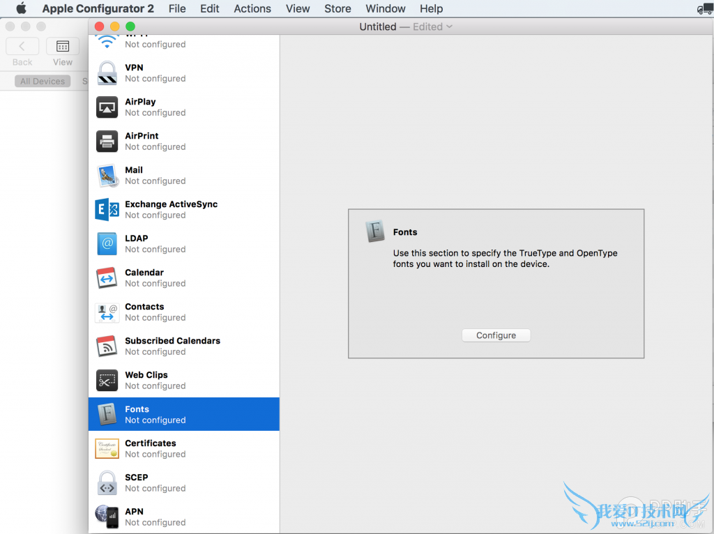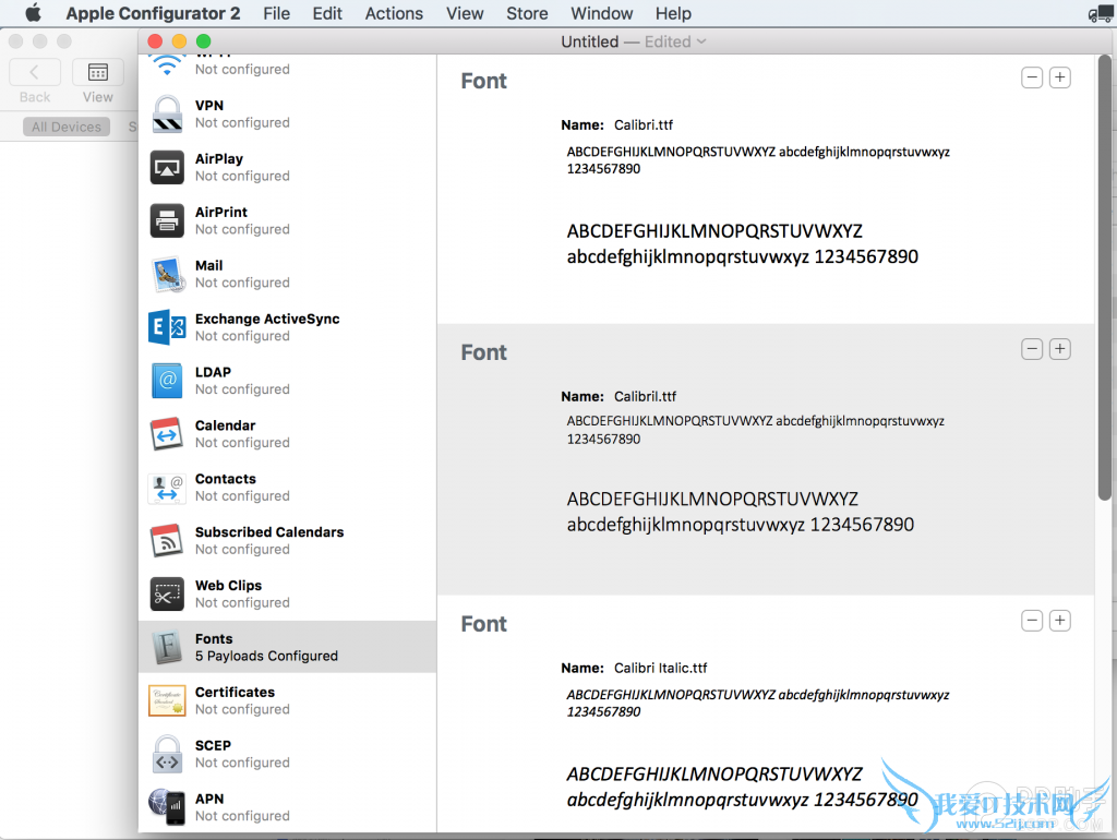 第二步:打开"apple configurator 2",新建一个profile,如图。然后在“general”,“name”里面取一个名字。这个名字会出来在ios的profile列表里面。比如以字体名称为名,“Calibri Fonts”。