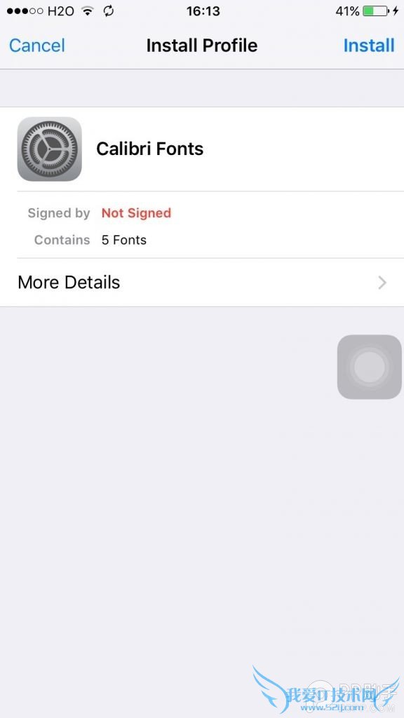 第五步:选择添加刚才新建的profile,这时ios设备会跳出安装界面,如图。直接安装就大功告成了(安装过程中不用管"apple configurator 2"跳出来的警告)。