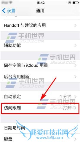 1)在设置界面点击【通用】,进入后选择【访问限制】。(如下图)