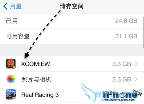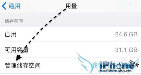 接下来请在用量列表里,点击“管理储存空间”一栏,如下图所示