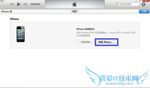 ¡¡¡¡×¢£ºÈç¹ûÊǻָ´ iOS 7 ²âÊÔ°æ¹Ì¼þ£¬Ç밴ס¼üÅÌÉϵġ°shift¡±¼ü£¬ÔÙµã»÷¡°¼ì²é¸üС±°´Å¥¡£ÓÉÓÚÎҵĻúÆ÷ÒѾÊÇ iOS 7ÁË£¬ËùÒÔ iTunes Öеġ°¼ì²é¸üС±°´Å¥Îª²»¿ÉÓÃ״̬¡£