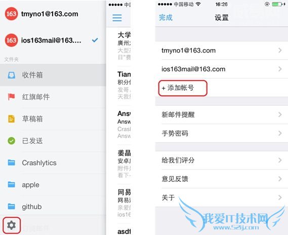 iOS邮箱:iOS邮箱并没有设计单独的手势密码,帐号与手机直接绑定,一旦手机丢失,意味着邮箱中的所有帐号、邮件信息都有可能泄露。