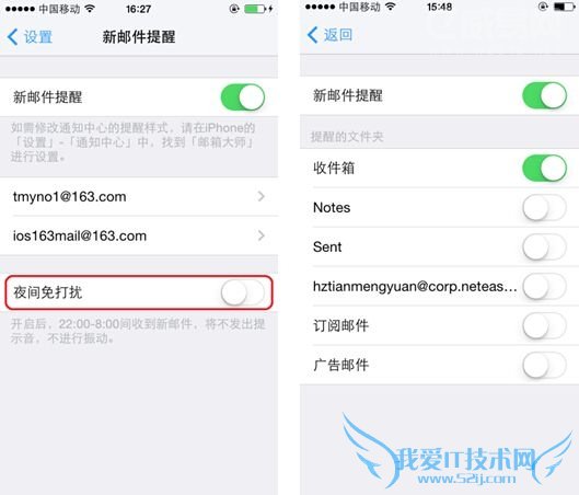iOS邮箱:不支持,只能统一开启或关闭提醒 邮箱大师:支持