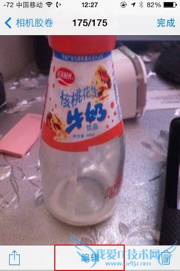 1、打开照片应用并选择要修改的照片,比如这个核桃花生奶的奶瓶,呃,核桃花生奶还是相当好吃喝的,原图如下: