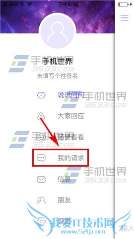 1)打开小灵灵进入应用,接着点击左上角【三】,在导航栏点击【我的请求】。(如下图)